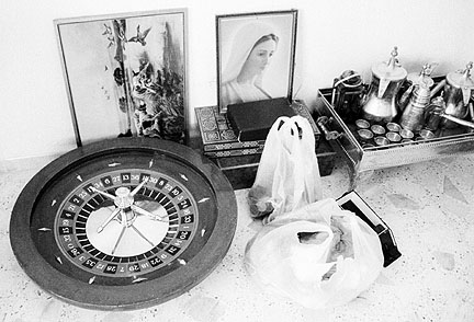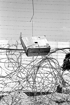 I took these pictures in July 2000, just a few weeks after the Israeli army pulled out of Southern Lebanon. Khiam was known for its detention camp, where the South Lebanon Army (SLA), Israel's proxy militia, tortured and held without trial hundreds of men and women for up to 14 years. After the pullout, it was turned into a tourist destination. More than any other village in the formerly occupied zone, Qlaya had reasons to worry about the departure of the Israeli army. Qlaya residents were among the first to turn for weapons to their Israeli neighbors, just three miles south, when their village was threatened by Palestinian warlords in 1976. |